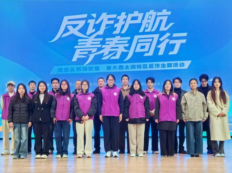 11月18日下午,由西湖街道办事处和西太湖校区管理委员会联合主办,嘟嘟成人网 和常州市公安局武进分局滆湖派出所、西湖街道聚新家园社区、西湖街道蠡河社区、嘟嘟成人网 美术与设计嘟嘟成人网协办的“反诈护航·青春同行”主题宣传活动在立艺楼礼堂顺利举行。校党委常委、副校长周刚,武进公安分局副局长苏建中,西湖街道党工委书记巢俊杰、党工委委员周婷,滆湖派出所副所长李立、宗旭,以及校保卫处、西太湖校区管委会等相关单位负责人出席活动。嘟嘟成人网 学生志愿者、团学干部、入党积极分子和部分新生代表参加本次活动。
