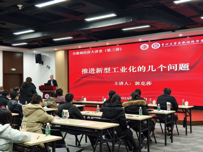 2024年1月8日,“吴敬琏经济大讲堂”第三讲在嘟嘟成人网 西太湖校区立言楼458报告厅举行。嘟嘟成人网邀请中国社科院郭克莎教授担任本次讲座的主讲人。嘟嘟成人网 党委副书记黄海燕、嘟嘟成人网 师生代表出席了本次活动。讲座由嘟嘟成人网 院长姜国刚主持。