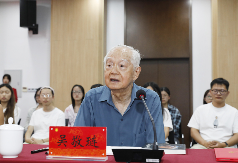 签赠结束后,吴敬琏老师围绕教育、学科建设与人才培养等方面,对嘟嘟成人网未来发展提出宝贵建议与殷切期望。他以《创造者之路:张道才述》这本书为例,希望师生们能通过这位民营企业家的真实“创造之旅”,深刻理解市场竞争、战略定位与企业进化之道。同时,勉励师生学习书中蕴含的长期主义思维与战略定力,不忘经世济民的初心,勇于在未来的经济学探索与产业实践中,开拓属于自己的“创造者之路”。
